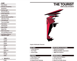 This was absolutely wonderful, ran a group through this with my homebrewed system for generating washed-out weirdos, and we had a blast! Thanks for such a great setting! https://perchance.org/stations-scifi-characters