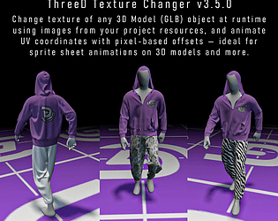 Change textures and animate UV offsets on GLB 3D Model objects at runtime.