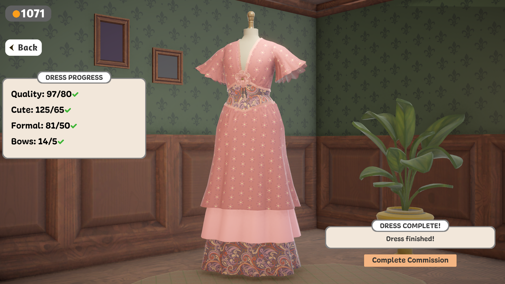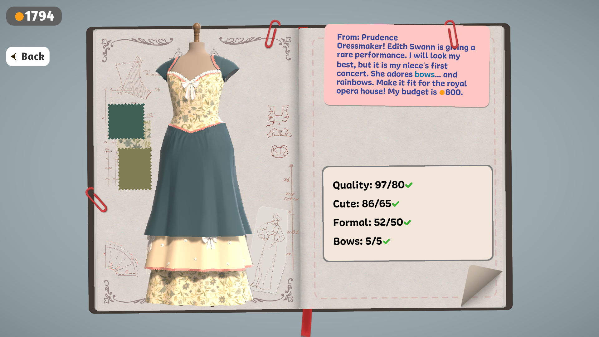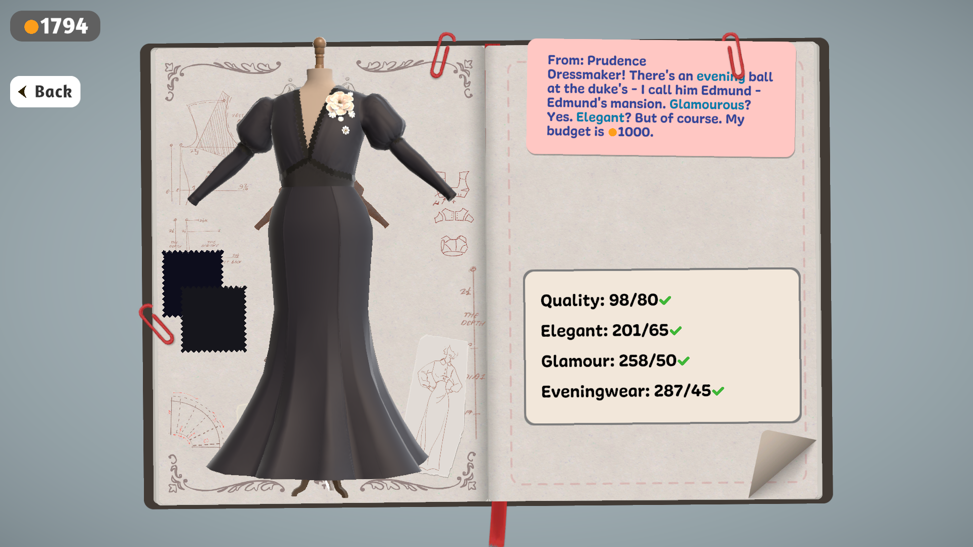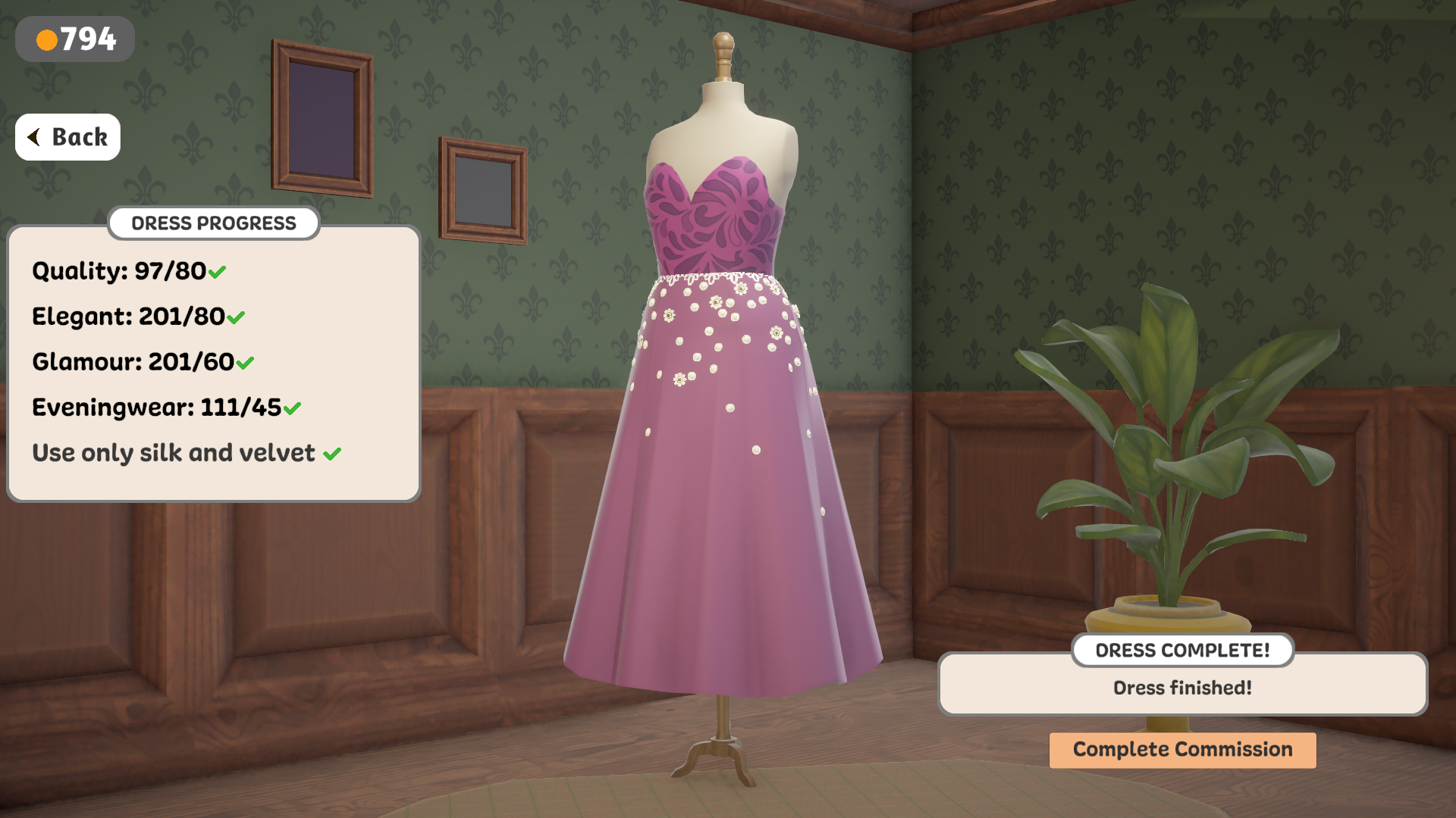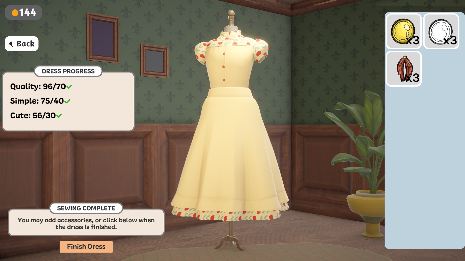 At first I had a problem with the game soft-locking me in certain spots like when I was cutting fabrics and later couldn't leave the table or once I put them on the mannequin I wasn't able to leave the viewpoint either. I have notied fast movements don't work in my favor: When trying to cut as many pieces as possible and also leaving the table, the scrissors got stuck and were unusuable.