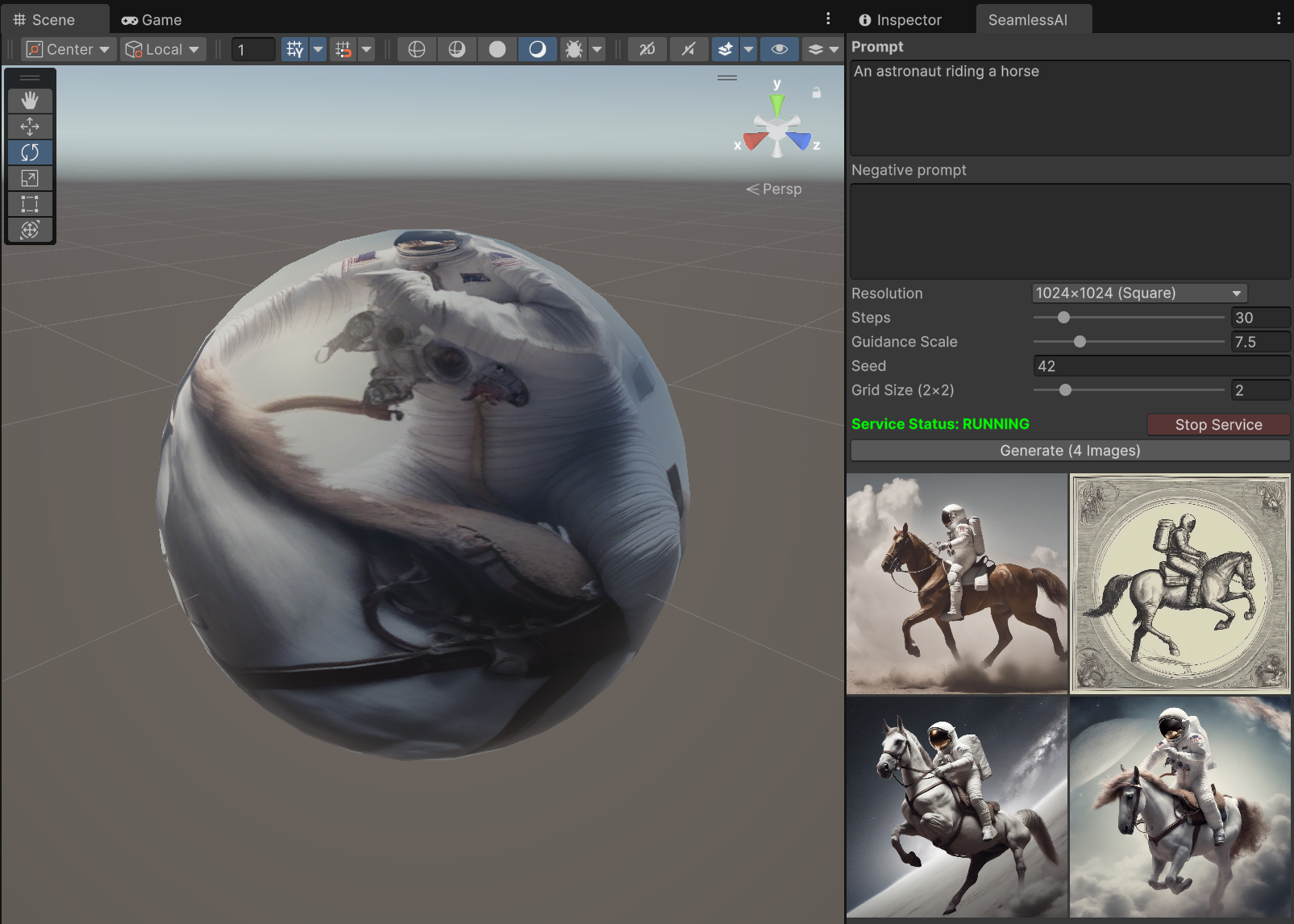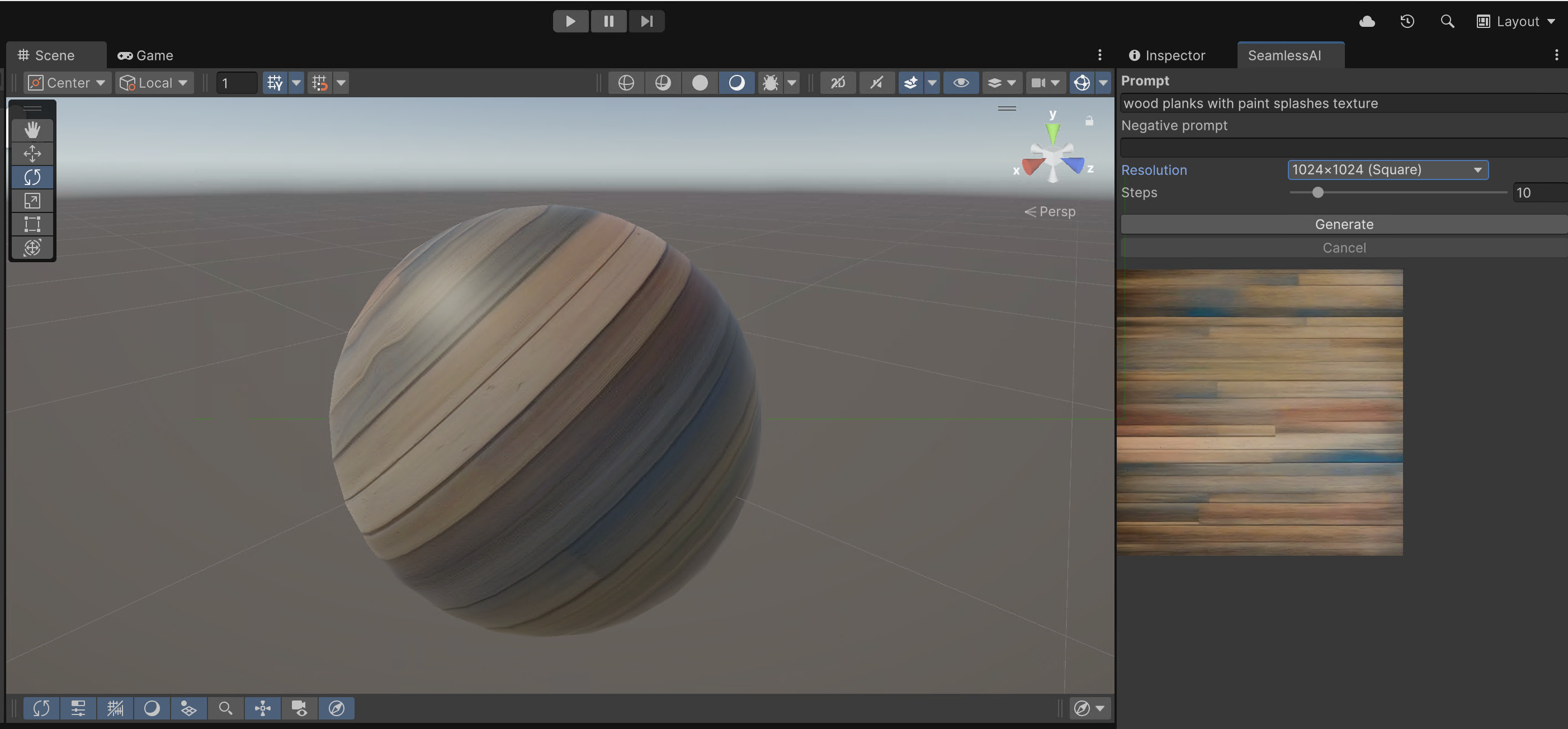 CUDA-accelerated local SDXL generation in Unity3D editor. Next up, seamless textures.
