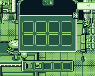 Gameboy-style green UI, including bottom bar, backpack, fishing progress bar, and phone.