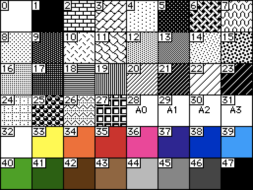 28 through 31 are "animated patterns" which are 1-bit unless you edit them so we'll also ignore them unless you're into that.