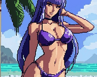 A simple test using AI generated text and images to tell a story about a woman in a purple bikini growing bigger.