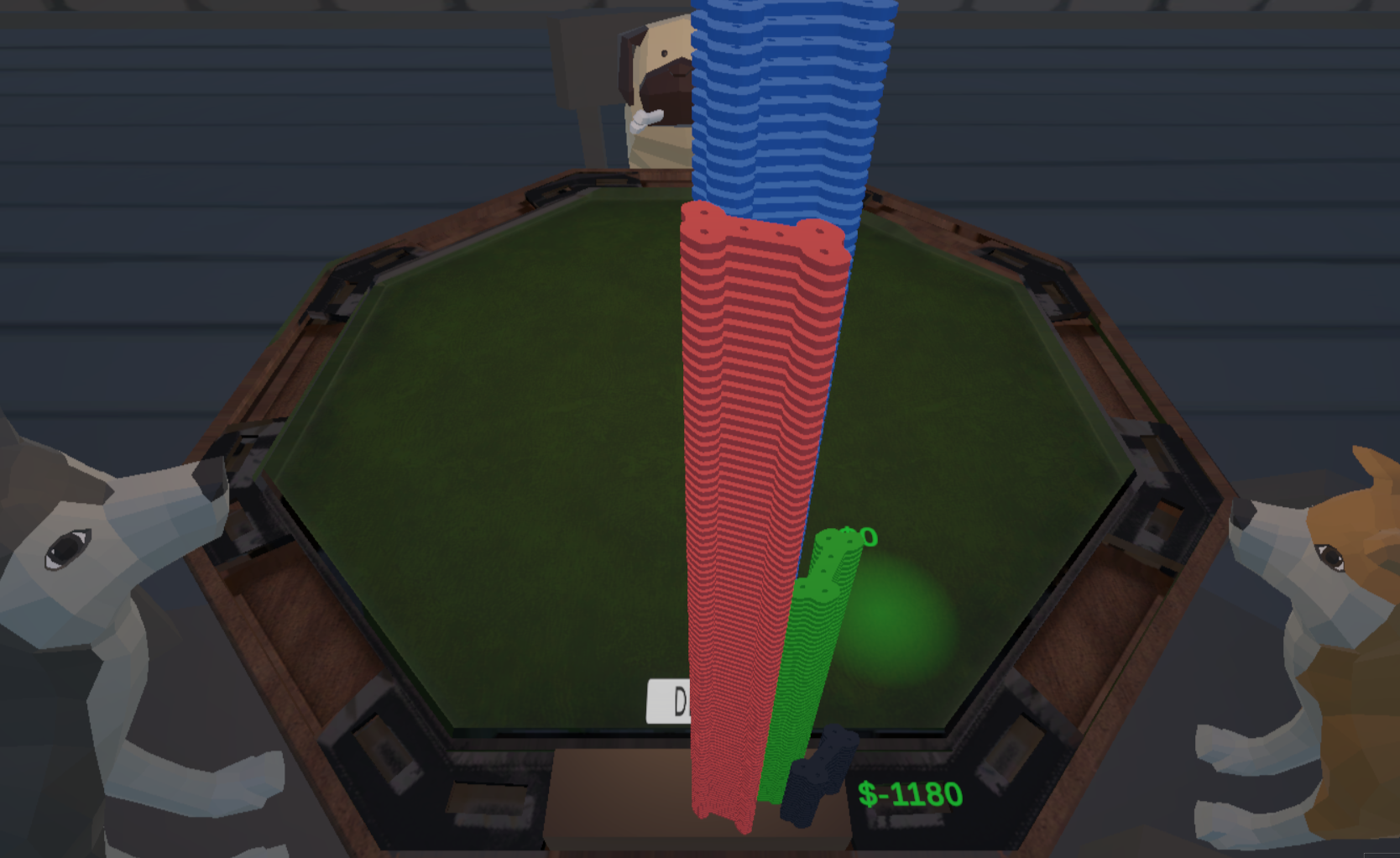 Cool game, it wasn't super clear to me what direction the wheel would spin and which card would be played first. I think some additional player feedback/move forecasting would improve the overall polish. Really impressive for a solo project and very unique. Audio and visuals were amazing. Nice work!