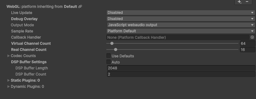 I see in the console logs of the webgl version that you tried to use FMOD. We know the struggle, we went the fmod route for previous jams, but decided to develop our own package to have dynamic audio because of the really low compatibility of fmod (or wwise for what matters) with webgl builds.