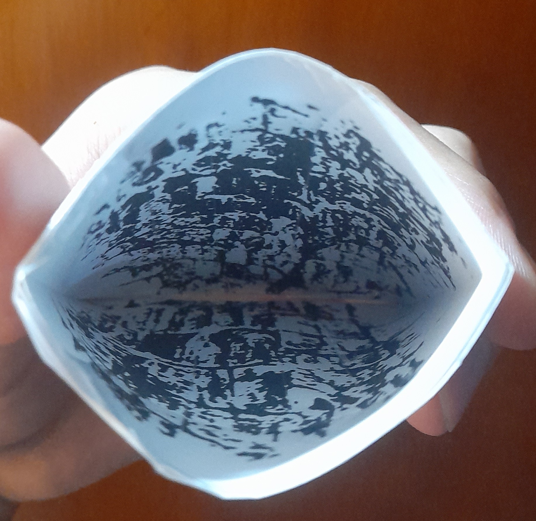 Open the pouch a little bit and separate the layers until you find the two walls. Use tape to keep the many layers into two solid masses of paper.