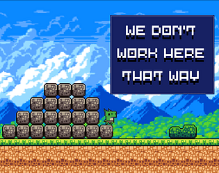 before you stands a gritty, episodic platformer about office bullying and workplace toxicity, cheekely named "We don't work here that way". Beneath the cheerful retro-styled aesthetics of a fantasy-themed adventure, it tells the dark story of a scally mage-intern fighting the epic struggle against his sleezy boss and ever-growing perils of the project they are working on.