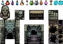 Ancient stone dungeon tileset and objects with beautiful pixel art style.