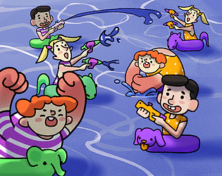 A pool brawler where kids throw water balloons and grow their team to win