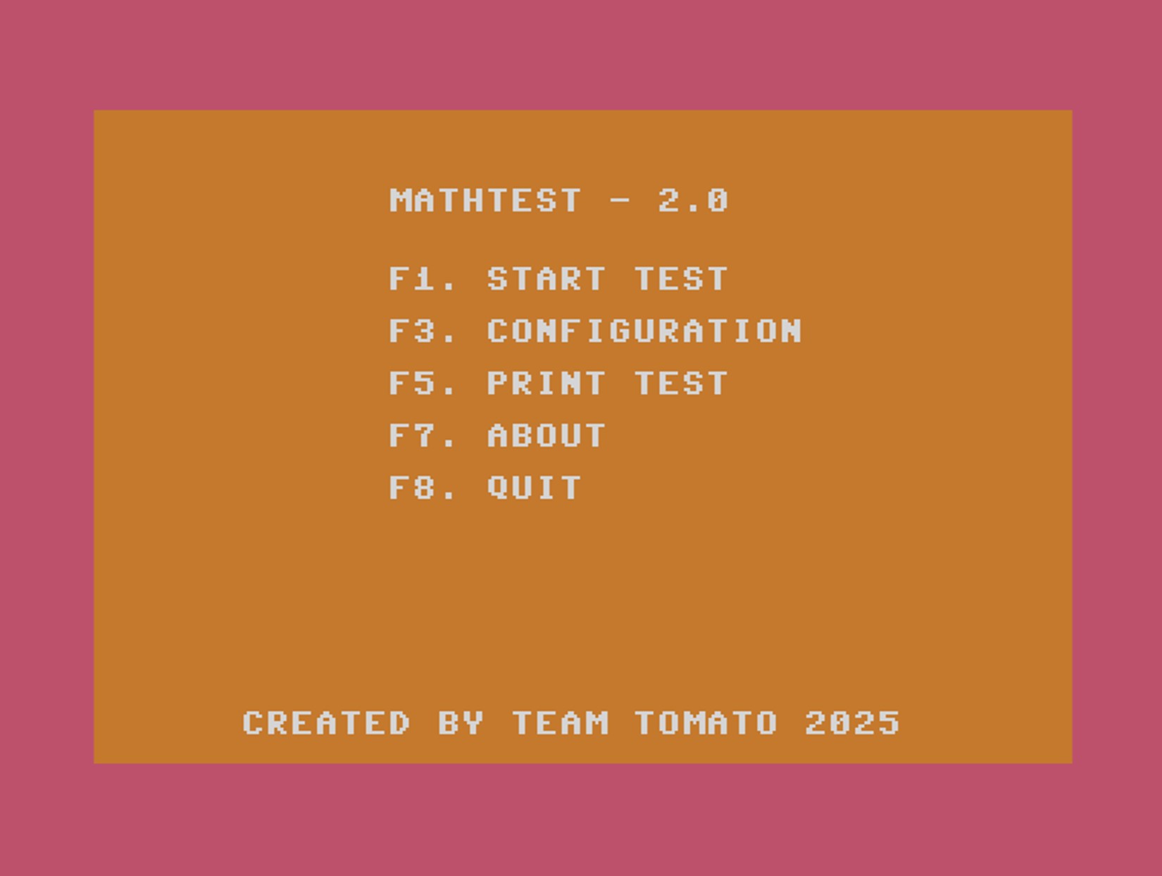 Math Test v1.0 is an educational software designed specifically for kids to enhance their basic arithmetic skills. Developed by Team Tomato, this program offers an interactive and engaging way for children to practice addition, subtraction, multiplication, and division through a series of customizable tests. The software is user-friendly, making it ideal for young learners to navigate and use independently or under guidance.