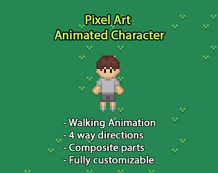Pixel art character walking animation ( 4 way directions )