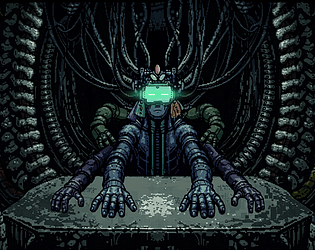 A consciousness stands before a godlike system, awaiting the player’s choice.