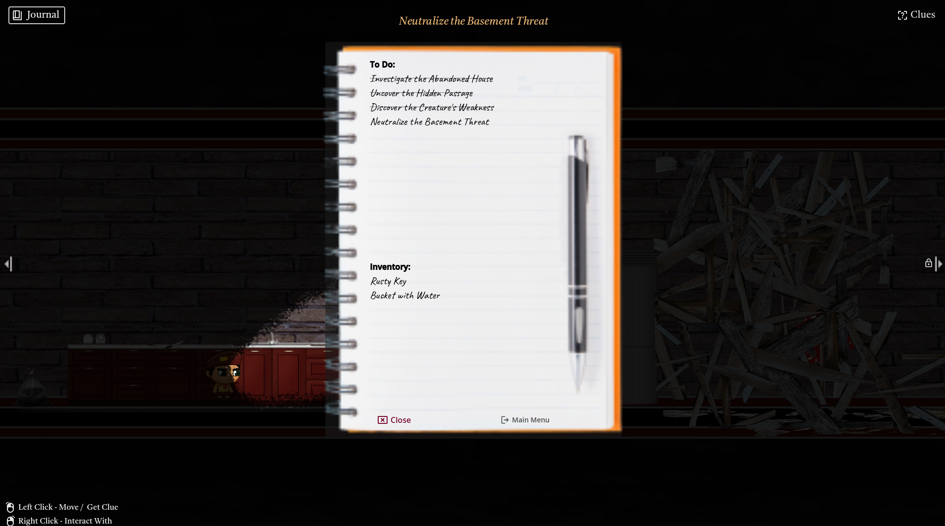 - Right-click: Interact with objects (Key, Book, Ladder, etc.)