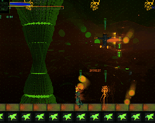 Really good pixel art and atmosphere, pretty impressive for a 7-day jam. The pumpkin counting puzzle is a bit tricky since the underground pumpkins separated by roots can look like a single big pumpkin. Also, in the area with the 2 eye logs right next to each other, attacking the closest one to you somehow results on the other one being damaged.