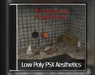 A retro PSX-style low-poly kitchen and food props asset pack for games and environments.