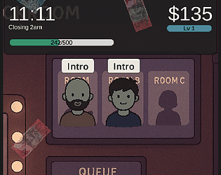 This game started as a small prototype focusing the core brothel shift loop: clients, energy, time pressure, and that slightly chaotic backroom vibe. During the jam I’ve released a Home Update (v0.2) that lets you go home between shifts, rest, upgrade your space, manage ads, and build progression over multiple days.