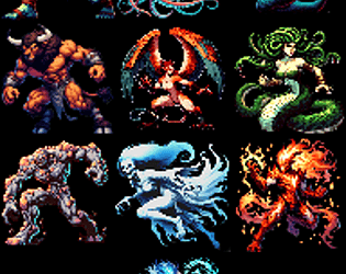 A selection of 64 by 64 monsters from various myths and legends.