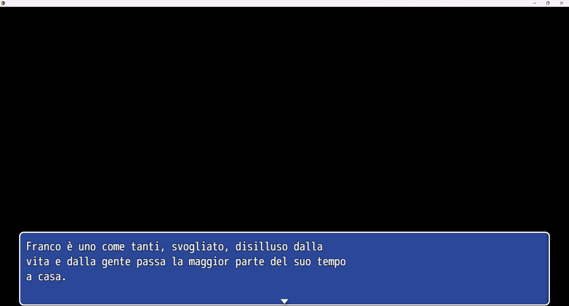 i've developed my first game with rpg maker mv, is a silly short (full in italian) game, it's called "L'importanza di essere Franco" and it's a fun twist on the "importance of being Ernest" but in 2025 Italy!