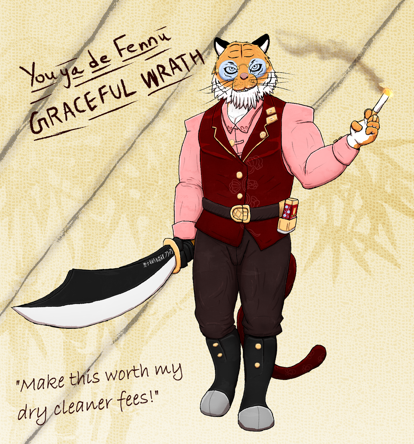A final character sheet for the tiger guy from the previous post.