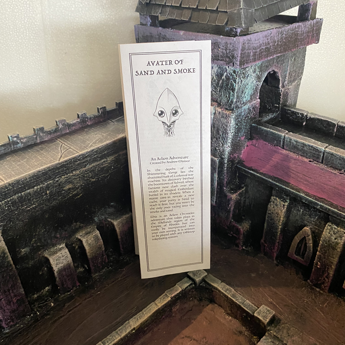 Hello, everyone! I've just released my third 1-page adventure in my Aclion Chronicles series, called Avatar of Sand and Smoke. It is a system agnostic adventure set in the Midlands region of the Rhodic Empire (however it can be slipped into any fantasy setting you wish). The Shimmering Gorge is a tucked away location carved out of the landscape millennia ago by an ancient war machine during a long forgotten war. The ruins of the colossus have laid within the valley undisturbed until ten years ago, when merchants discovered that the Emberdust, ash that was left behind by the crumbling artifact, was worth its weight in gold. The adventure begins when the party is hired to escort one of the four factions' emissary to a newly discovered cache of Emberdust after a cave in revealed its existence. However, the party must work fast since they are not the only ones who want to claim the cache for themselves.