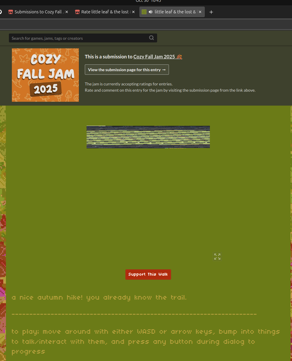 On the other hand, the game really nails the cozy vibes, and again: the art is very beautiful. So good work on that, and congratulations on your submission!
