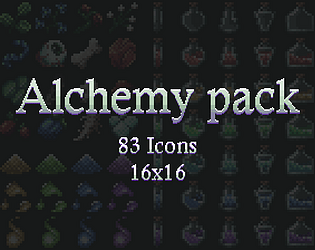 This asset pack includes 83 Icons related to Alchemy materials and potions!