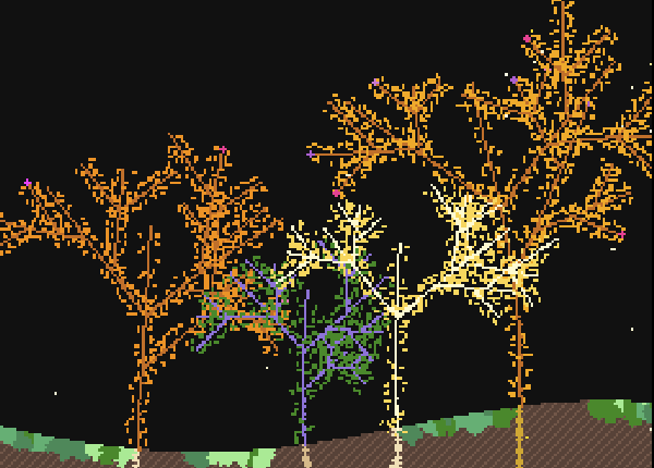 The mechanic of timing and placement of seeds flows really nicely. Giving a tree more space so it can grow taller, and seeing how collisions with other trees affect their development, is a really satisfying and well-thought-out.
