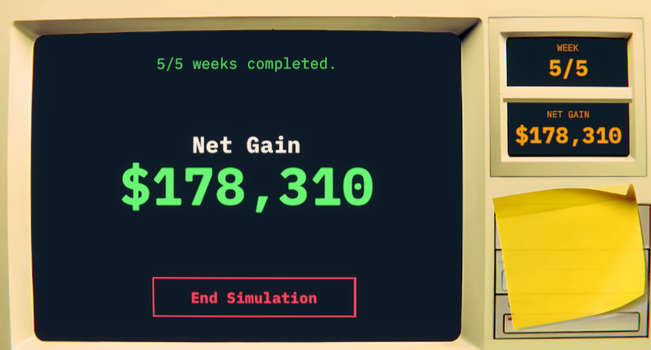 Visuals are great and they work well with the gameplay. The concept of having limited characters is nice so people have to plan around that. Its still pretty easy to note down a ton of info though (in the later days I mostly just did number to number for where I want to buy and sell. e.g. 4to11-16to22)