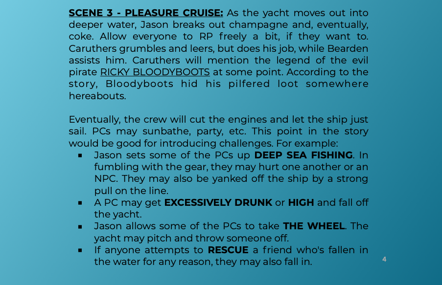 A luxury cruise becomes a nightmare, as the PCs are stalked by sharks, storms, and pirate ghosts!
