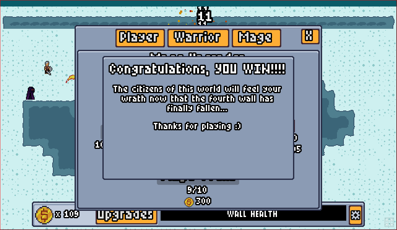 As I have said before, I personally am glad you took the theme literally, overall the game is fun and engaging, the theme is well implemented and the art is great as usual. I did notice that the player sprite doesn't flip on direction change but that's just a small detail. Great job working with what little time you had. P.S. Mages are the meta, they allowed me to basically sit back and watch as my war was won for me.