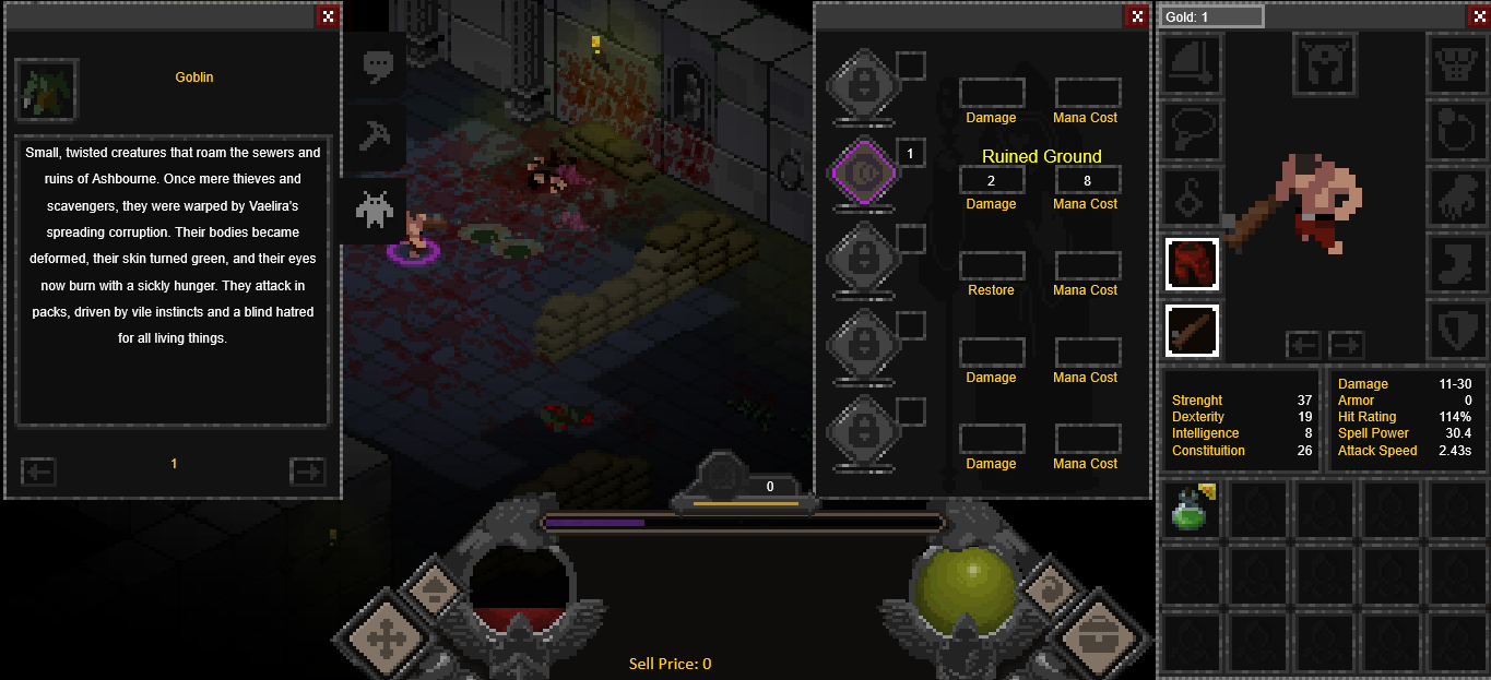 The game takes place in the cursed village of Ashbourne, where you play as an escaped slave exploring dungeons, fighting twisted creatures, and collecting corrupted blood from enemies using the Wraith Crucible. This blood can be offered at dark altars to reset dungeons and alter rewards.