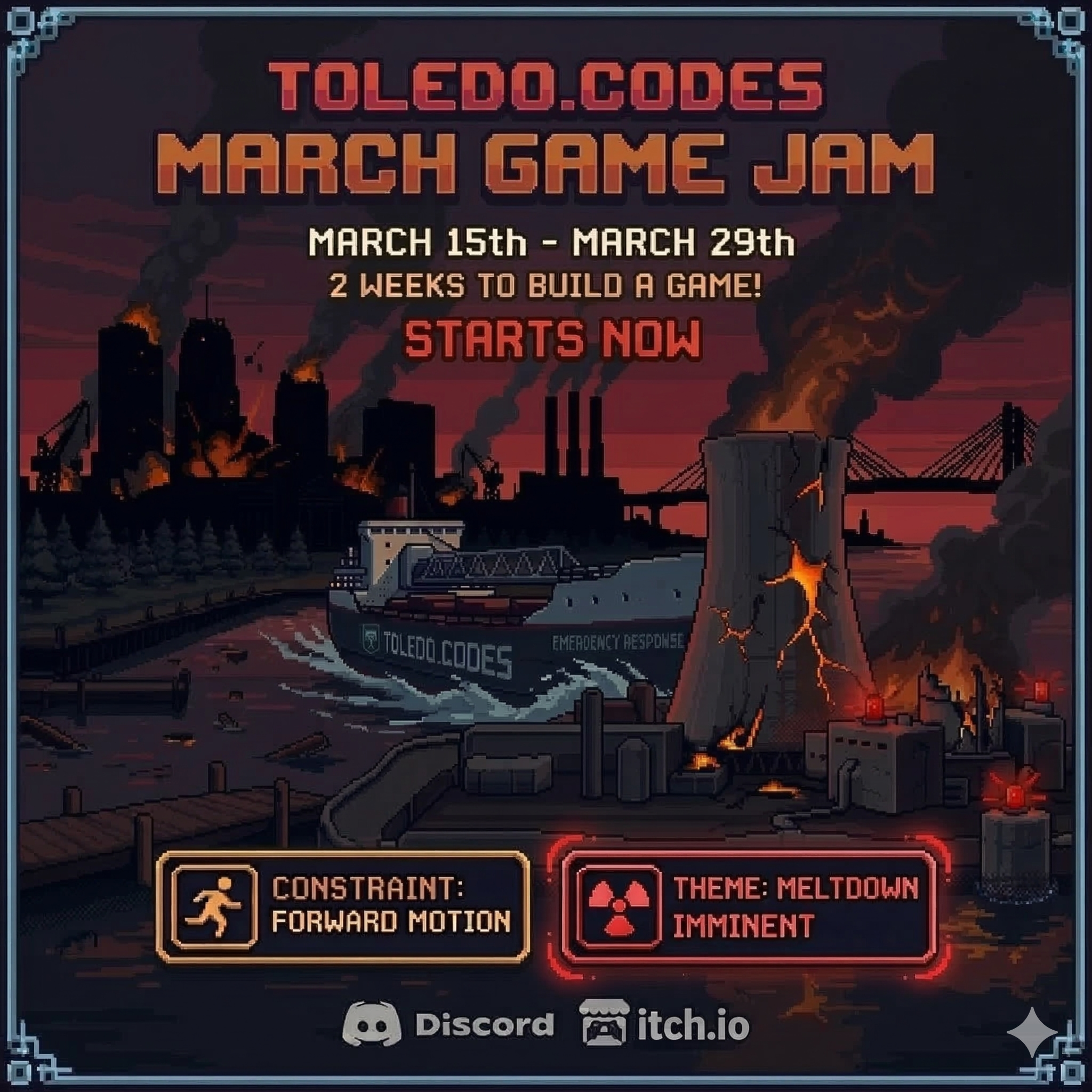 This Discord is set up specifically for our Game Jams to facilitate communication and collaboration. Speaking to a more broad Toledo.codes organization, we also have www.toledo.codes as a hub of events going on in the Greater Toledo area, as well as a Slack for more broad conversations about tech with like-minded folks. We're a regional group, but always welcome others from outside our area.