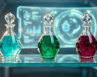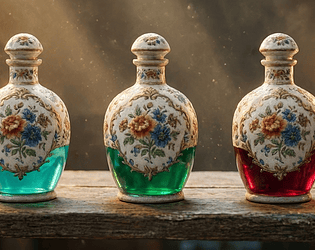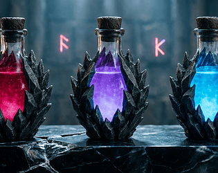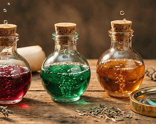 Vintage alchemy potion bottles for RPGs, fantasy games, and digital art.