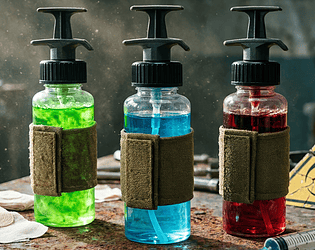 14 rugged tactical spray bottles with fabric wraps and press-top dispensers