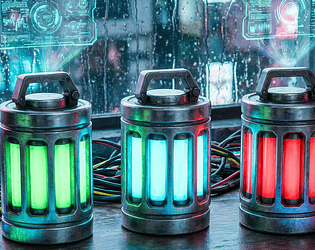 23 cyber canisters with LED grids, holographic displays & glowing nanite liquids