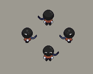 Character with five animations (Idle, walk, run, and 1 attack) in four directions
