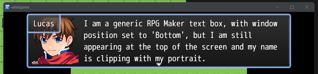 2. This one's more of a bug - window positions for all text boxes in the game are moved to the top of the screen while the plugin is active, and the name field clips into the portrait.
