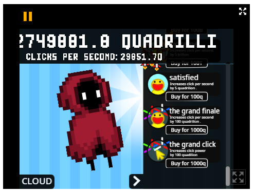 I wish there were visual effects on screen from the power ups. Nice music. I always enjoy incremental clicker games. Simple and addicting. However, it does not fit the "Waves" theme well. The game seemed unrelated to the jam theme. Still a great game and i enjoyed playing it.