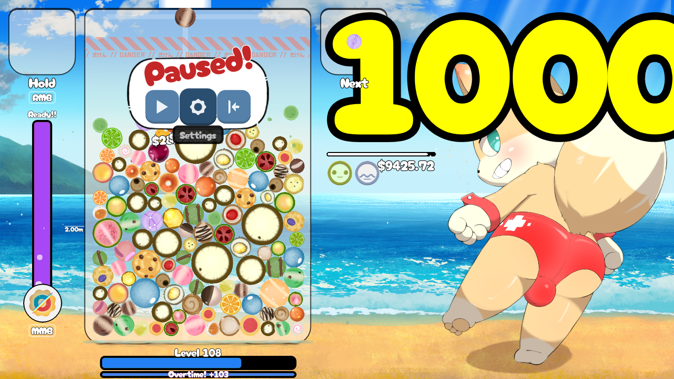 Unsure whether this is intentional, but at some point, the multiplier starts to cover some of the UI. This includes the character and the box holding the next candy. The candy and the "next" text still displays over the multiplier tho. Another thing, upon reaching the 1000x multiplier whilst playing with the first bug, the "x" flies off the screen, suggesting that there's no border stopping the multiplier from expanding past the screen.