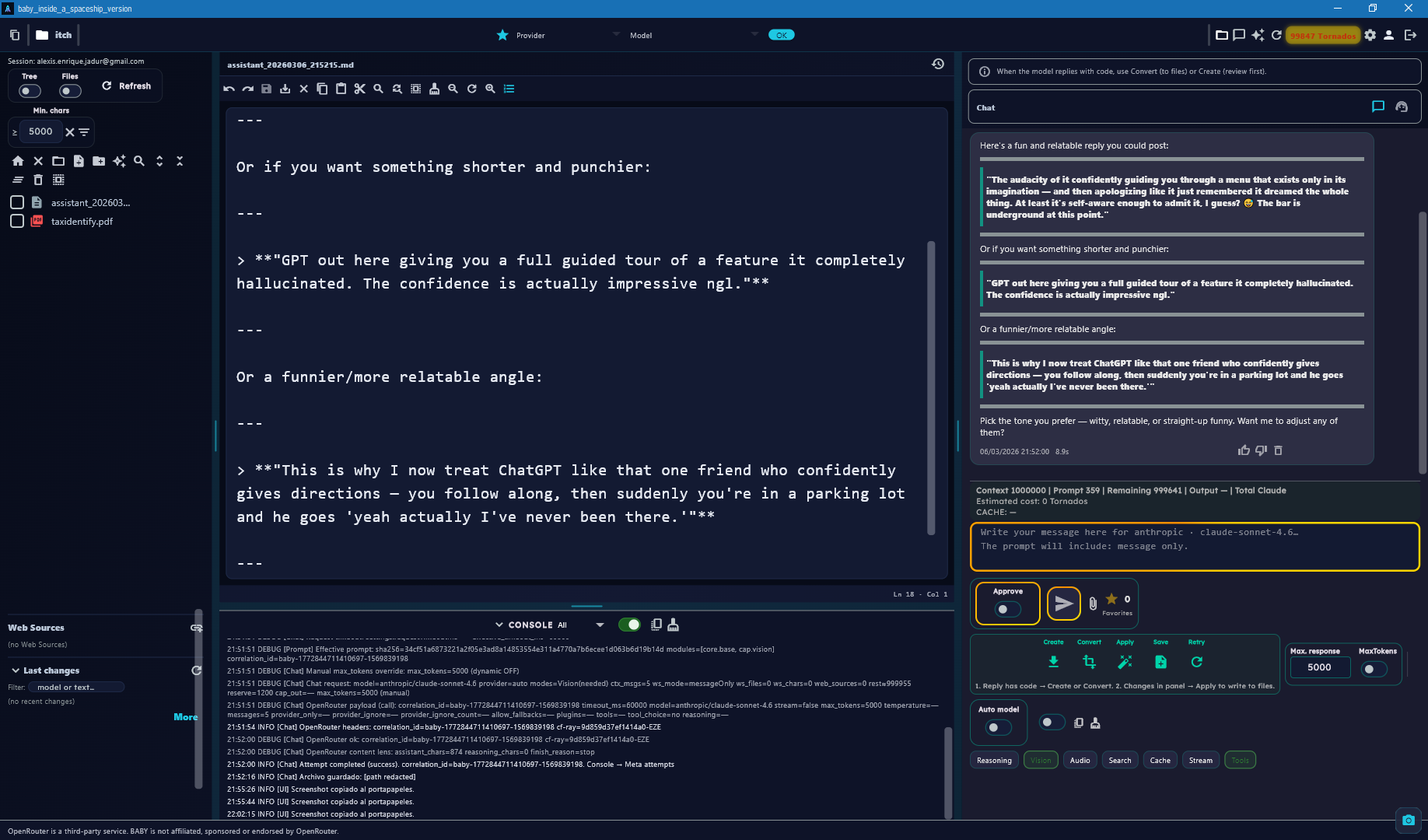 BABY AI gives you transparent control over 300+ AI models through OpenRouter integration—no vendor lock-in, just full transparency. Use it for coding, writing, research, brainstorming, and organization.