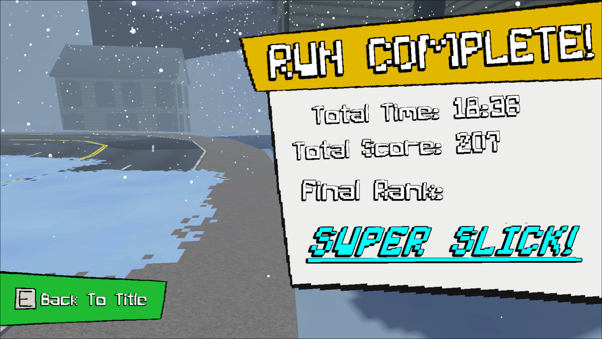 Been a while since I played a skateboarding game, but I think this is very solid for a week's worth of work, though it definitely needs some tuning. Pulling off tricks like ollies were doable and fun, but the bars to indicate rail grinding and doing a mono didn't really show how close you were to falling off well imo. I also thought the UI looked too similar to the one which shows how many tricks you'll be able to do in the air, so sometimes I thought I was doing a trick when I was grinding instead and vice versa.