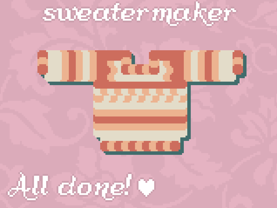 I've seen a lot of cool designs here in the comments, lots of good pixel art and patterns. I got a pretty simple one to share here, just uses three colors.