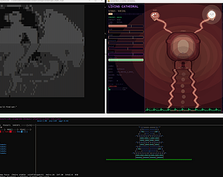 Vore society sim. Ogres eat ants (think spawnable cells/ronin) and give you a haiku after to commemorate. Seems simple, but there is a deep societal and economic sim here (not that deep, but ya know). Watch as Hana of the Thin Rope (which your hard-won economy generated) tries to kill a bounty, dies, gets eaten, stored as a livestock cell, gets processed, generates a disposal scene and taunt (tasteful, shader pixels only, no genitalia), and returns as a slime cloud on the map before vanishing. 5~ endings, from secret unlocking ogre_shader (cute intimacy, BTaming style, safe, conesenting, adult) ending to automated narcos empire. It's wild, maybe not fully "vore", but there are pipelines.