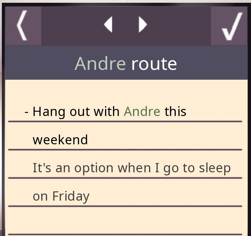 Alr, this is in regard to Andre's route. Ive reached the point where to tasks tab says "Hang out with andre this weekend" (the pool scene), and ive already done that multiple times. Is this just the end for her route, did i do smth wrong, is it a glitch or am i missing a requirement for the rest of the story? (this is a repost of my old comment since i didnt know how to view own comments at the time)