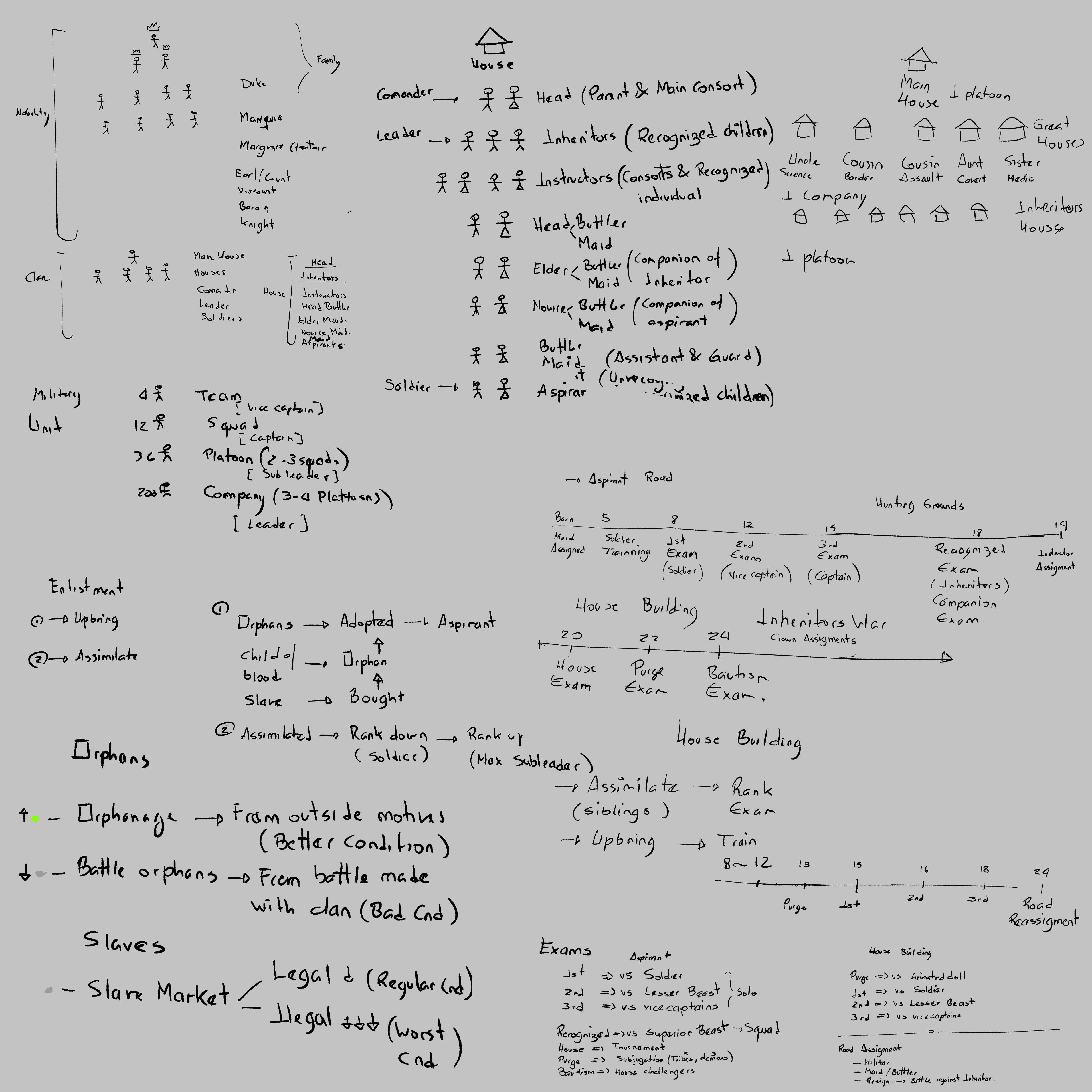 You need to train an pass various exams, if you succeed, you ascend in rank, if not... you die. You can get help for other characters, right now only a maid. When your rank is high enough you will be given the opportunity to recruit and train other characters that will join your army ( if they also pass the exams), you will be able to interact with them.