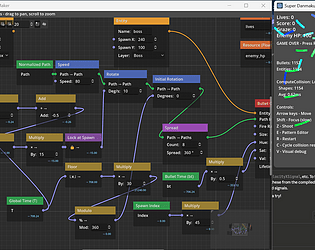 A shmup game engine with a visual node-based pattern editor. Create, test, and play danmaku patterns in real-time.