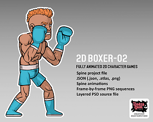 2D character for games. Includes: 31 animations, Spine files, PNG frames, and PSD file. ready for production