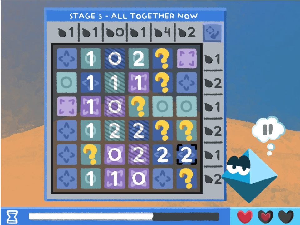 EDIT AGAIN AGAIN: It's becoming very tempting to make it so that, when I know where every mine is and where every safe tile is, I am allowed to flip them all as needed.