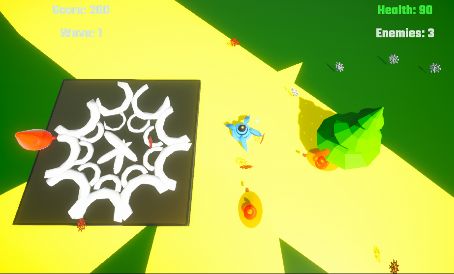 There is no direct enemy to kill. The objective is to keep the toxic pool centered so that plants can be in green land and live.
