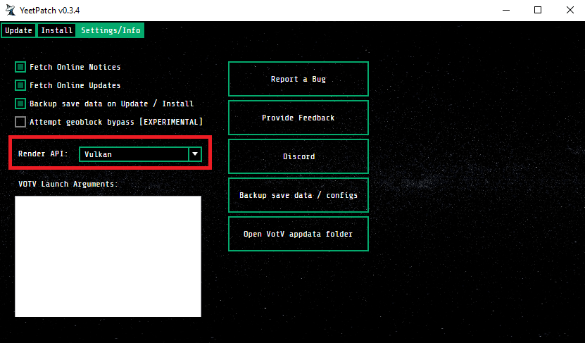 Use the Yeet Patcher in the latest version to change to the Vulkan API.